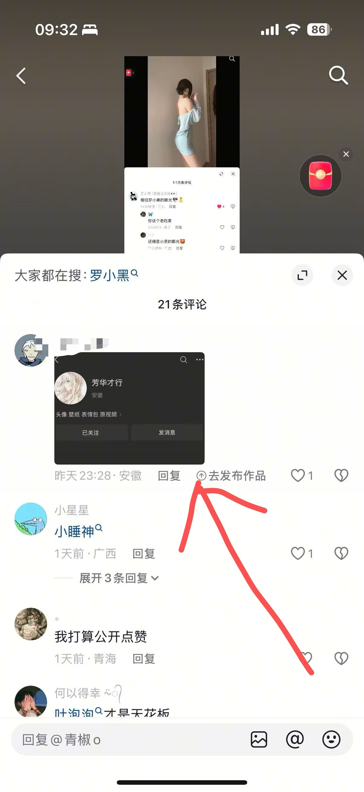 打开抖音或小红书或哔哩哔哩或快手搜索关键词,搜索后往下滑,选3个评论少或者没有评论的作品