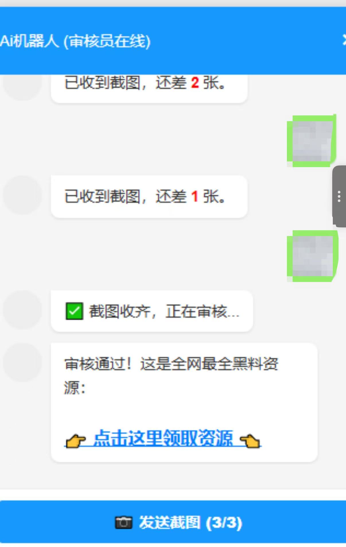Ai机器人会在(10)秒内审核完,然后会在聊天框自动弹出所有资源的跳转网盘链接